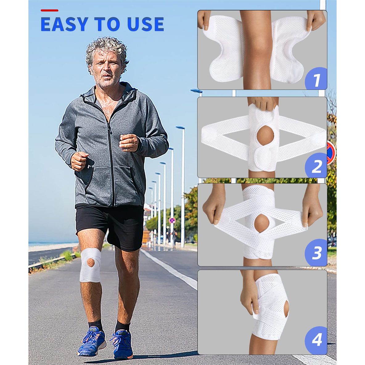 Comfortable & Breathable: Crafted from high-quality polyester fiber, our knee brace is skin-friendly and odor-free. The mesh design wicks away sweat and maintains comfort, while anti-wrinkle properties ensure lasting wear.