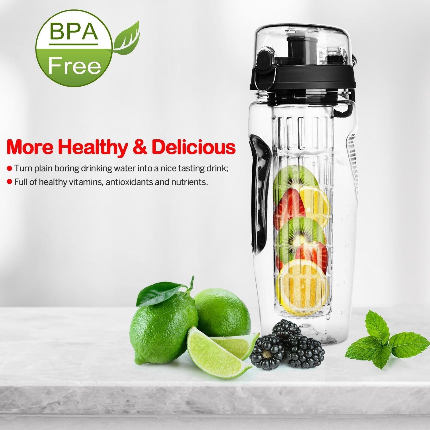 *Multi-Function*:Built-in infuser cage keeps fruit out of the way as you sip and can be removed for easy refill/clean and also to use as a standard water bottle. Suitable for almost any fruit; vegetable or herb to create personalized flavors.