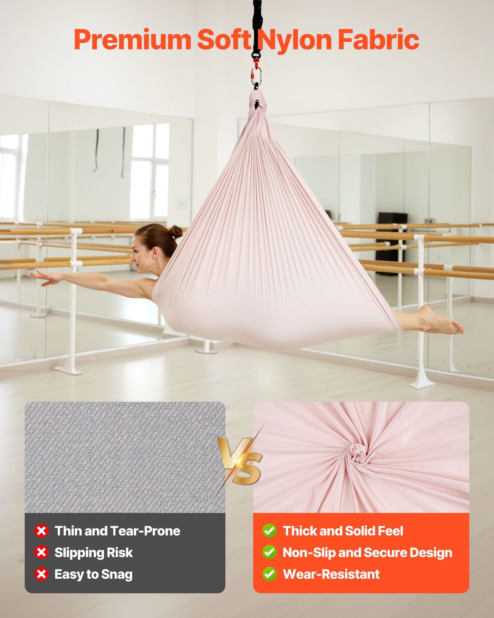Enhance your aerial yoga with this nylon knit aerial silk hammock, suitable for beginners and advanced users. The set includes versatile accessories, vivid hand-dyed gradient colors, and multiple size options to fit any space, offering a comfortable, stylish, and versatile aerial yoga experience.