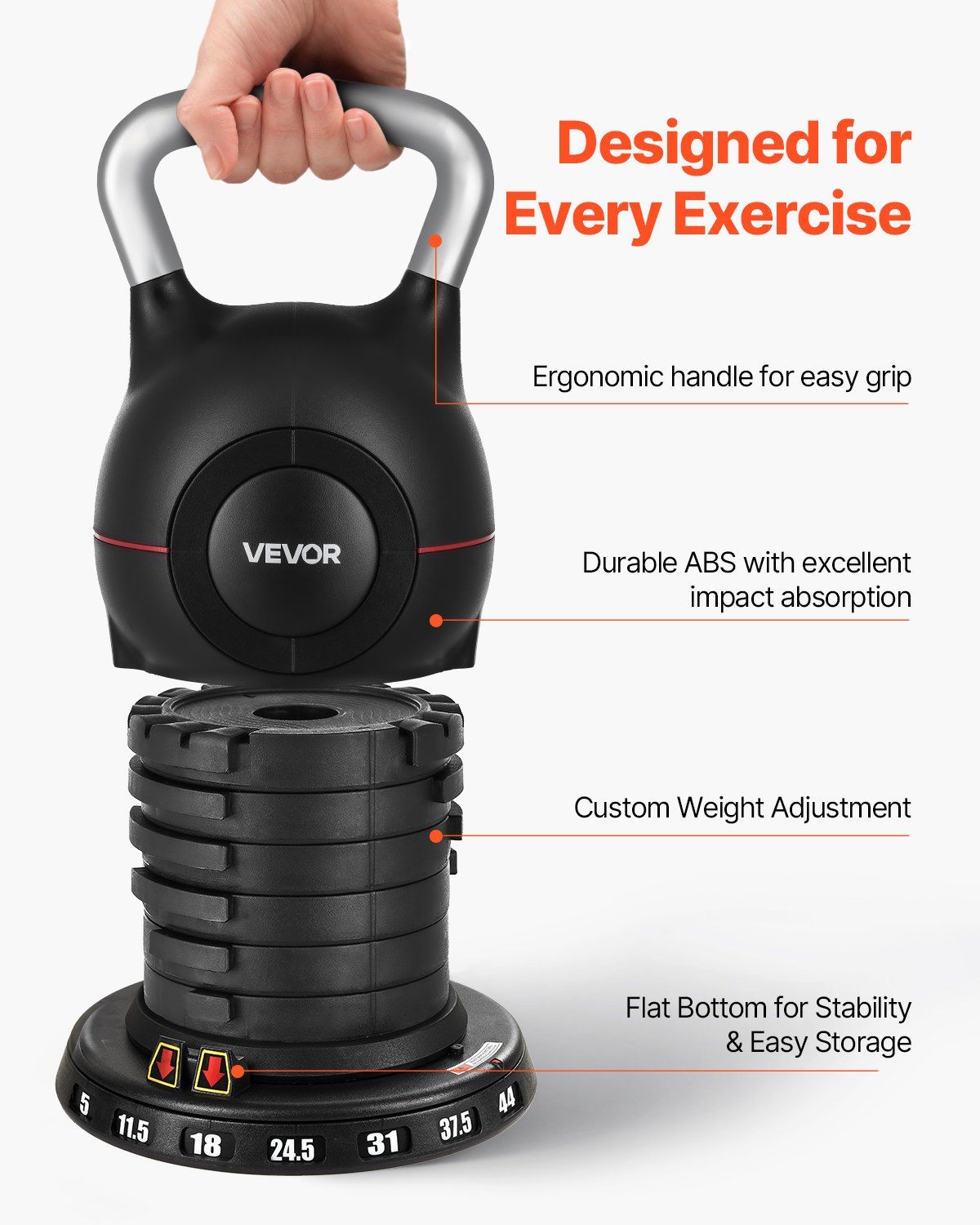 VEVOR Kettlebell, Adjustable Kettlebell with 7 Weight Levels (5, 11.5, 18, 24.5, 31, 37.5, 44 lbs), Die-Cast Aluminum and ABS Material VEVOR Kettlebell, Adjustable Kettlebell with 7 Weight Levels (5, 11.5, 18, 24.5, 31, 37.5, 44 lbs), Die-Cast Aluminum and ABS Material VEVOR Kettlebell, Adjustable Kettlebell with 7 Weight Levels (5, 11.5, 18, 24.5, 31, 37.5, 44 lbs), Die-Cast Aluminum and ABS Material
