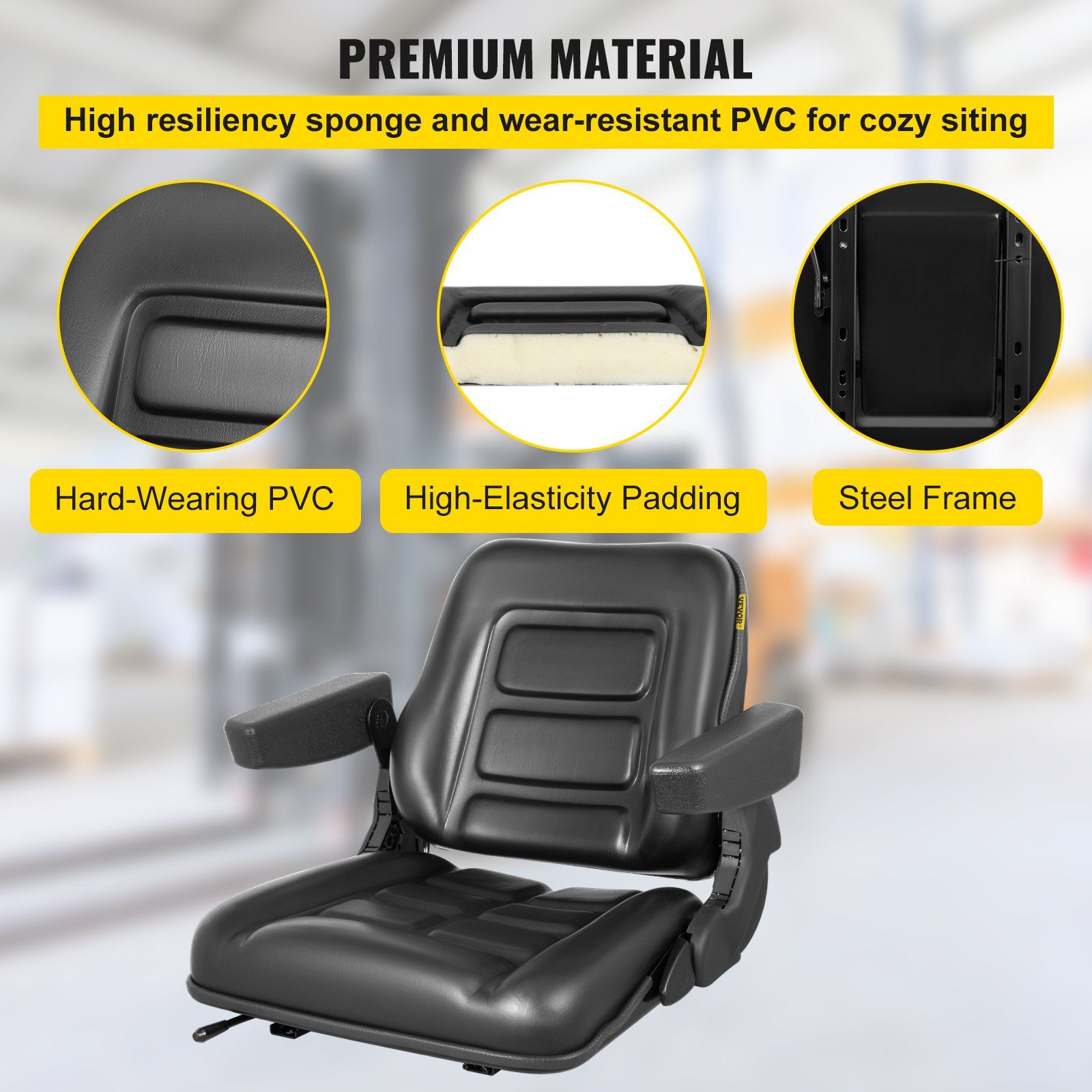 VEVOR Universal Forklift Seat Black PVC Tractor Seat, 6"/150MM Adjustable Mower Seat Foldable Seat Including Armrests&Seat Switch VEVOR Universal Forklift Seat Black PVC Tractor Seat, 6"/150MM Adjustable Mower Seat Foldable Seat Including Armrests&Seat Switch VEVOR Universal Forklift Seat Black PVC Tractor Seat, 6"/150MM Adjustable Mower Seat Foldable Seat Including Armrests&Seat Switch