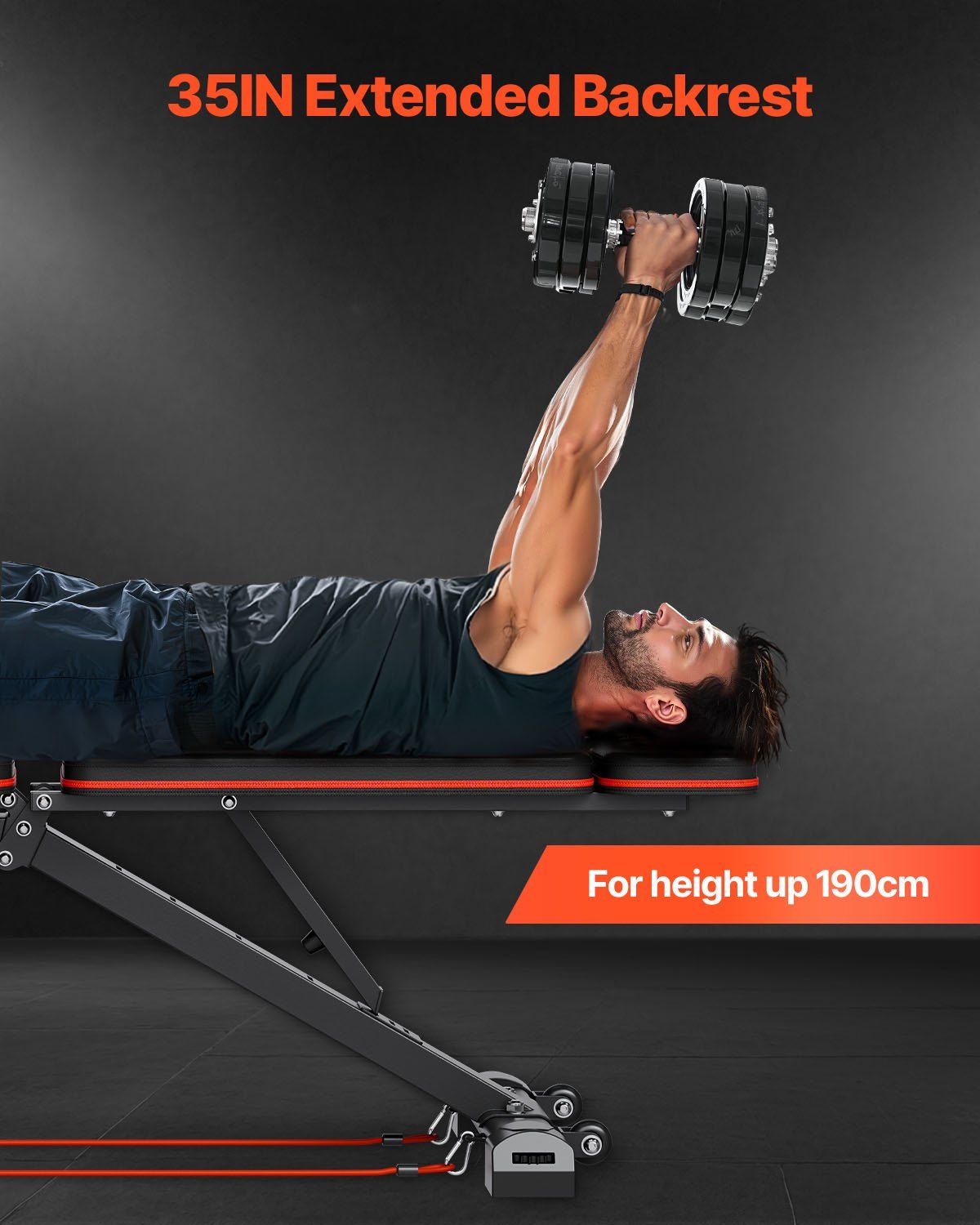 5.Extended Backrest for Enhanced Comfort: The 35-inch long ergonomic backrest provides comfort and spine protection, ensuring a pleasant experience during all your workouts